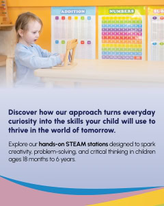 Whether your child is building, experimenting, caring, or questioning, this event offers a glimpse into how early STEAM learning, guided by thoughtful educators and real-world expertise, nurtures confident, capable thinkers.