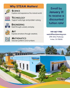Join us for a hands-on STEAM Fair & Open House at Westcliff Early Learning Academy, where curiosity, creativity, and real-world exploration come together.